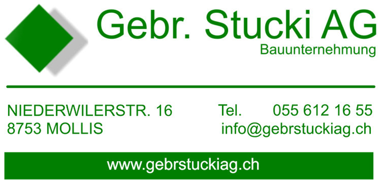 Gebr. Stucki AG Bauunternehmung Niederwilerstr. 16 8753 Mollis www.gebrstuckiag.ch × Niederwilerstr. 16 8753 Mollis